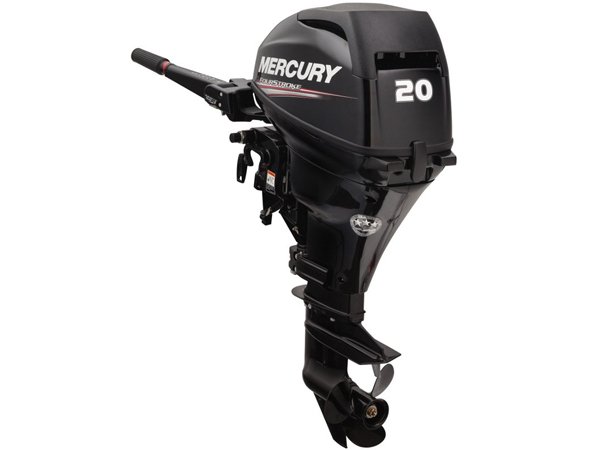 The Mercury 20 HP outboard motor model 20ELH comes with the convenient features you want: Electric start motor, 20 inch long shaft, multi-function tiller handle, heavy duty transom bracket, and vibration absorbing mounts. The intake manifold design provides fast acceleration, while the large displacement and prop provide planes quickly planes your boat. Between the two the Mercury 20 HP is going to get you where you need to be faster. Mercury Marine Outboards are legendary for reliability and the Mercury 3 year factory warranty make this outboard motor an affordable engine!